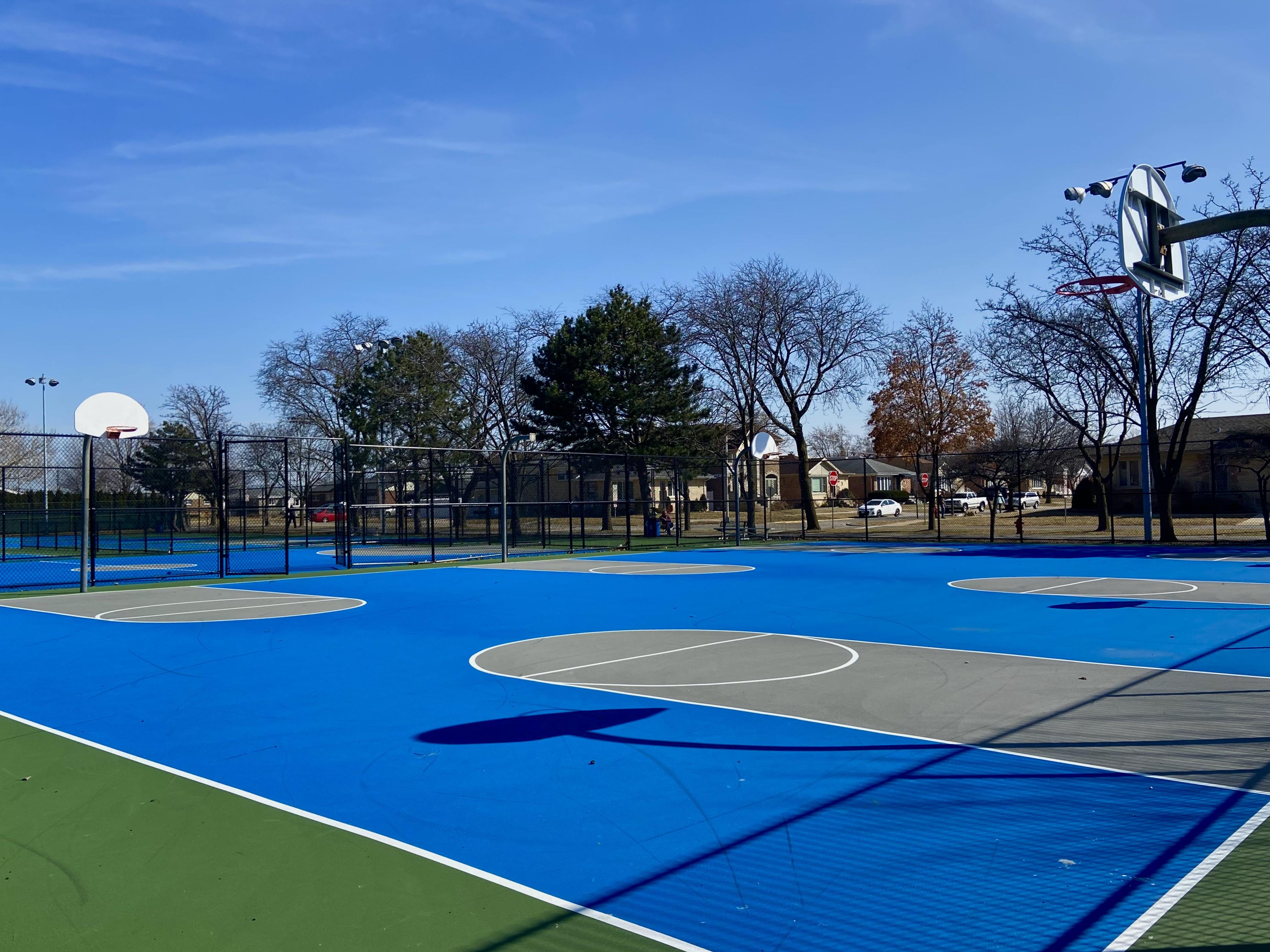 The Norridge Park District offers six outdoor basketball courts located at the south end of the park, accessible from Wilson Ave.